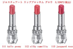“満開花リップ”の愛称で知られる「ジルスチュアート リップブロッサム グロウ」からは、華やかな春色の限定3色がラインナップしました。